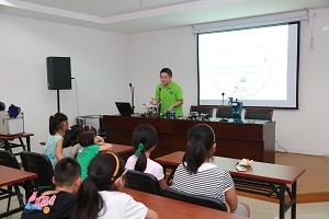 团队成员之一同时也是南京邮电大学机器人创新实践基地主席的崔轩宇同学担任本次活动的主讲。崔轩宇同学用精美的PPT生动地为小朋友讲解了机器人的构造和原理,通过视频放映的形式告诉了孩子们机器人到底是什么,讲解了机器人的发展历史和发明构成。之后,他又为小朋友们演示了带来的机器人,小朋友们见识到了不同种类、不同功能的机器人,在欢乐的气氛中领略机器人的魅力,感受科技、知识的力量。最后,社区小朋友们在志愿者的讲解下与仿真机器人、救援机器人、机器狗等实体进行了零距离互动。本次活动在小朋友们的欢声笑语中落下帷幕。
