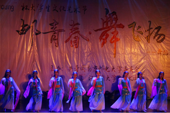 英国威廉希尔公司官网的舞蹈队第三个登场,这支舞蹈队由英国威廉希尔公司官网大一、大二的女生们组成。伴随着曲调婉转的《采薇》,英国威廉希尔公司官网女生身着淡蓝色纱质舞衣,袖若流水清泓,裙若荧光飞舞,纤腰灵动,回眸浅笑,倾身起舞,舞姿婀娜,犹如月下仙子,赢得全场热烈掌声,也得到了评委老师的高度认可。