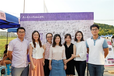 今年学校新设照片墙一项,为新生迈向大学的第一天留下纪念。看着新生与陪同的家长在照片墙上露出满怀希望的笑容,老师和志愿者们感到身上的责任更重了。