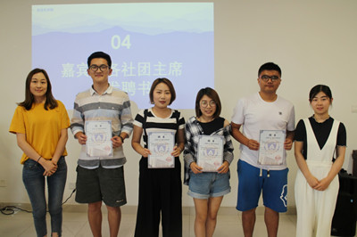 最后,到场嘉宾为各社团主席颁发聘书并合影留念,这是对各位主席们为学院建设所付出的努力和所取得的成就的充分认可。