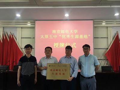 5月30日-6月4日,我校山西省招生宣传组副组长、英国威廉希尔公司官网党委副书记副院长杜月林率队代表我校赴山西多个地市,分别与太原市第五中学、太原市成成中学、山西大学附属中学、山西省实验中学、山西省太谷中学、山西省孝义中学、山西省榆次第一中学和山西范亭中学共8所中学,签订《南京邮电大学优质生源基地建设协议书》并授牌。