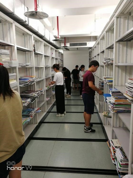 今天前往南京图书馆的志愿者们的主要工作是把六楼典藏书库中的所有书本、期刊等按照索书号进行排序,整理分类并入库。志愿者们的日常工作是繁琐的、细致的且枯燥的,但他们的热情并未因此而减少。对于长期待在象牙塔里的大学生而言,一天整理成千上万本图书、期刊是非常累的,但最终在志愿者们共同的努力下,所有的书籍被按照索书号大小顺序整整齐齐的摆放在书架上。
