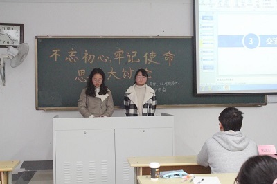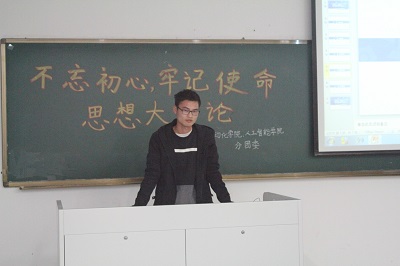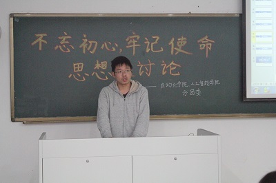 之后,各小组展开热烈讨论,各抒己见,分别表达了对“不忘初心、牢记使命”和“江苏高质量发展”等热点问题的看法。比如在教育方面,有小组认为人才适当北流,可以减少南北教育差异;在文化方面,有小组提出江苏需要保持对非物质文化遗产的保护,守护江苏这片古老土地的文化财富;在经济方面,有小组提出江苏的经济发展应该注重稳扎稳打,在引进新兴产业的同时切莫忘记根本,不能急于求成;在环境保护方面,有小组提出我们在发展过程中必须注重生态环境保护,既要金山银山,也要绿水青山。最后,分团委秘书处副主席陈勇杰和宋伏阳分别上台发表了自己的观点,陈勇杰认为为了江苏更好的明天,我们在仰望星空的同时也要脚踏实地,应当于平时生活学习中提升个人能力和个人素养;宋伏阳认为我们在学习生活中,除了着眼课本,还应该关注江苏时政,关心民生,不忘初心,并希望18级各班级团支书和组宣委会后在各自班级组织开展相学习活动,进一步深入学习习近平总书记系列重要讲话精神,用自己的实际行动助力学校“双一流”建设。