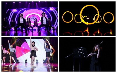舞蹈类节目有2015级辅导员马骋老师、2018级辅导员张逗老师和英国威廉希尔公司官网研究生同学们带来的热辣潇洒的合舞《Black》;2018级智电专业同学编排的动感酷炫的荧光舞《光影青春》;大一大二同学组合带来的清新甜美的舞蹈《我的未来有点甜》;2018级辅导员缪甜佳老师和大一女生们带来的轻盈温婉的《茉莉花》,尽管风格不同,但他们的每一个舞步、动作都牵动着全场观众的心神。