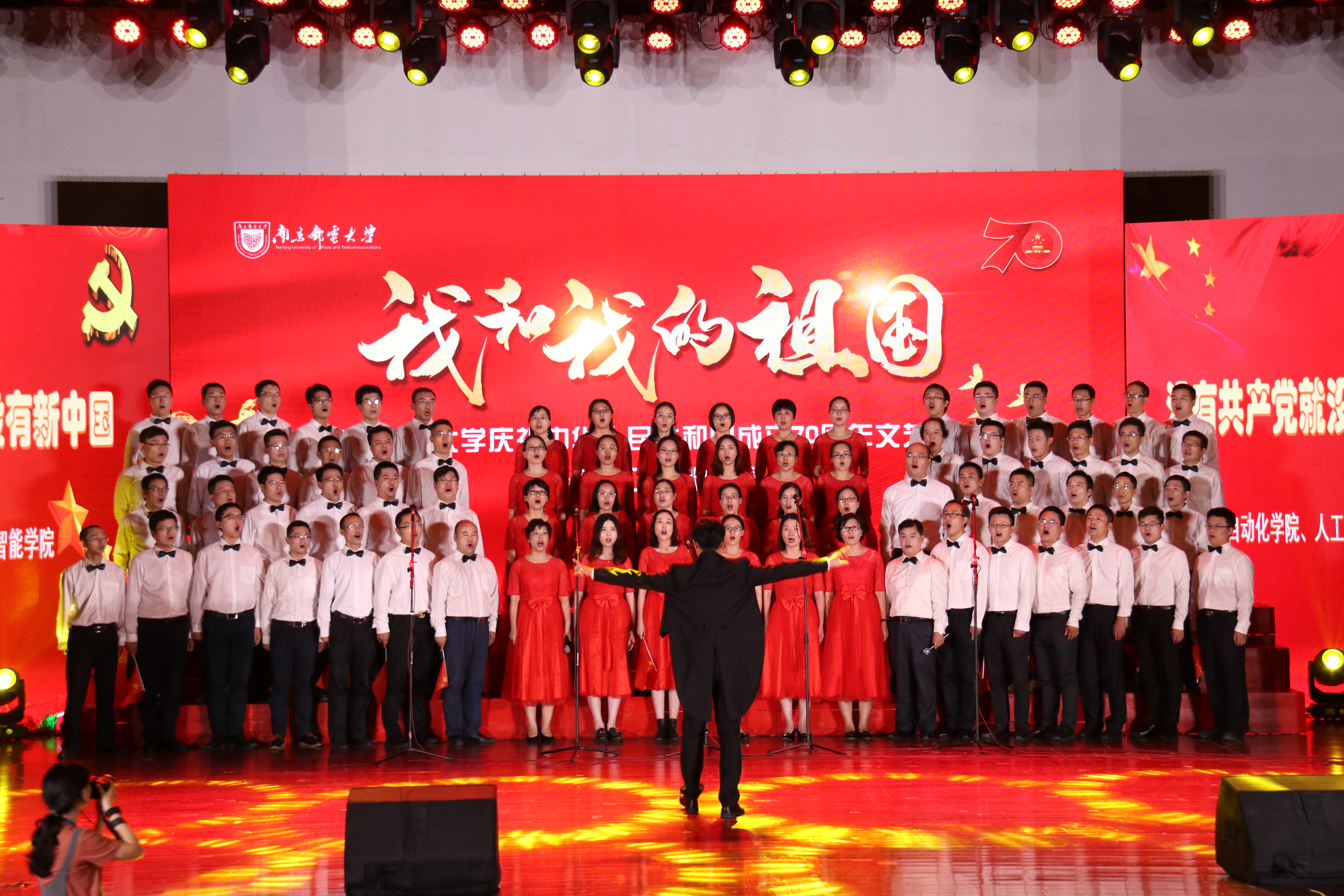 9月28日下午,仙林校区青春剧场,南京邮电大学庆祝中华人民共和国成立70周年文艺汇演暨教职工合唱比在激昂的啦啦操表演中拉开帷幕。